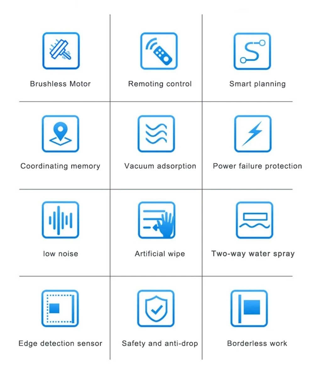 Square window cleaning robot Other functions: anti-fall, auto-cleaning, IOS/Android Doodle Smart APP,efficient window cloth, gap detection, gyro sensor, power failure protection, track cleaning mode。