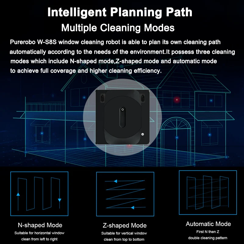 Purerobo W-S8S window cleaning robot is able to plan its own cleaning path automatically according to the needs of the environment.