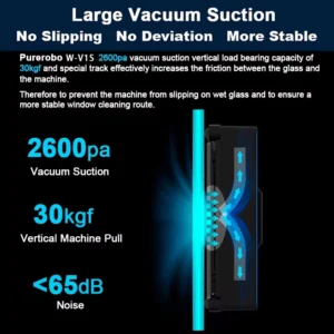 Purerobo W-S8S 2600pa vacuum suction vertical load bearing capacity of 30kgf and special track effectively increases the friction between the glass and the machine.